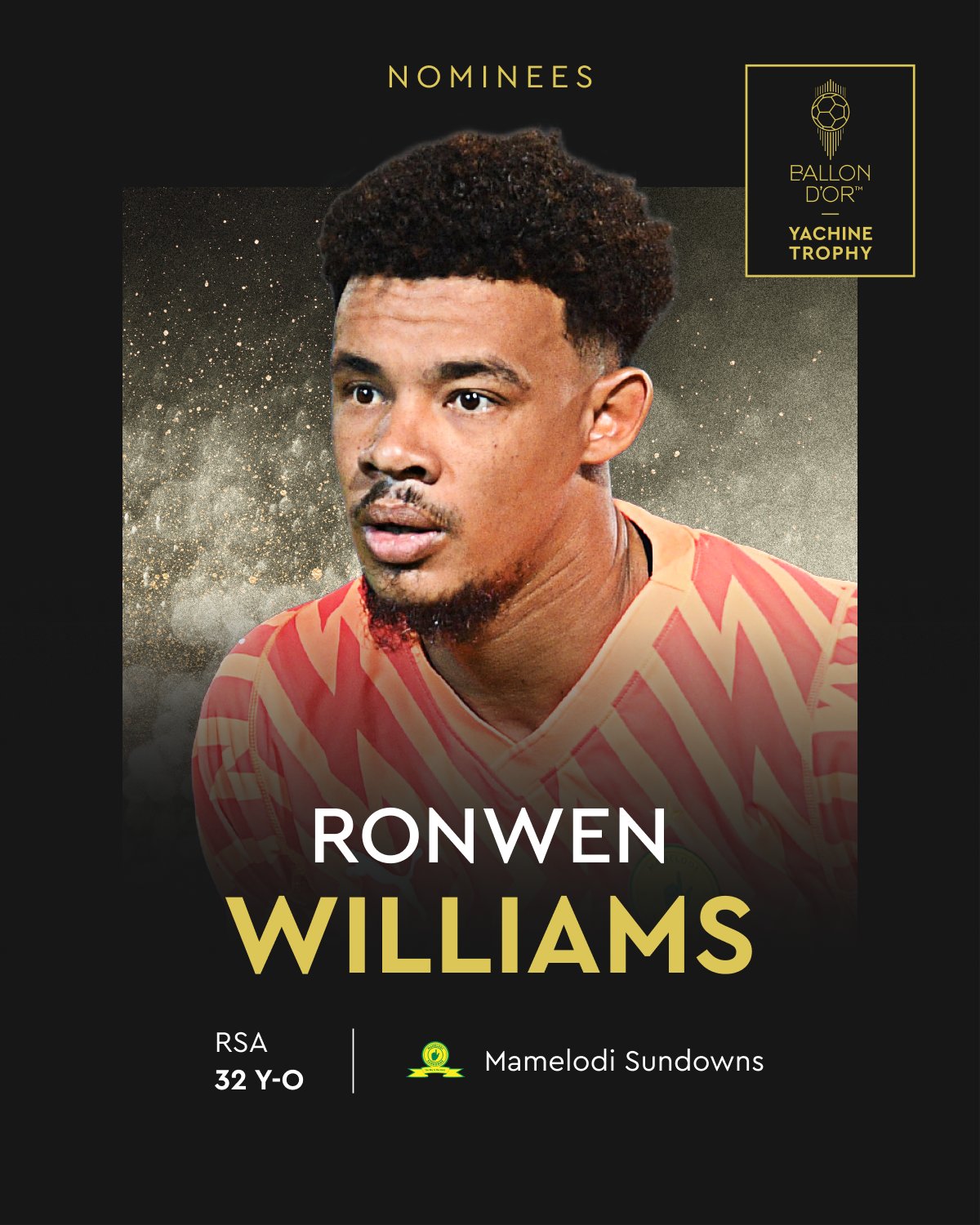 Mamelodi Sundowns goalkeeper and Bafana Bafana captain Ronwen Williams has made history as the first goalkeeper to be nominated for the Ballon d’Or Yashin Trophy while playing for a club in Africa.