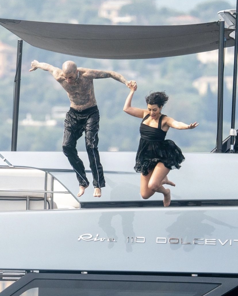 Following their nuptials, the Barkers dived off a yacht hand in hand.
