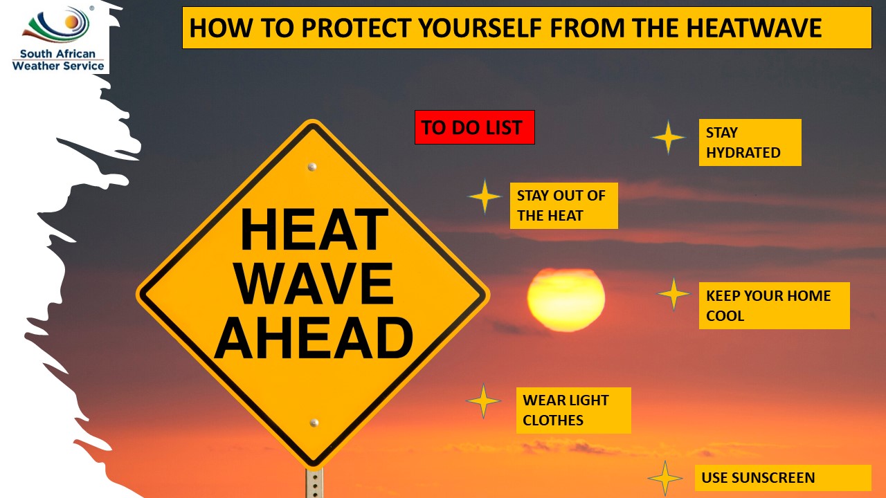 SA Weather’s advice to South Africans on how protect themselves against this heat wave is “stay out of the heat, stay hydrated, wear light clothes, keep your home cool, and use sunscreen.