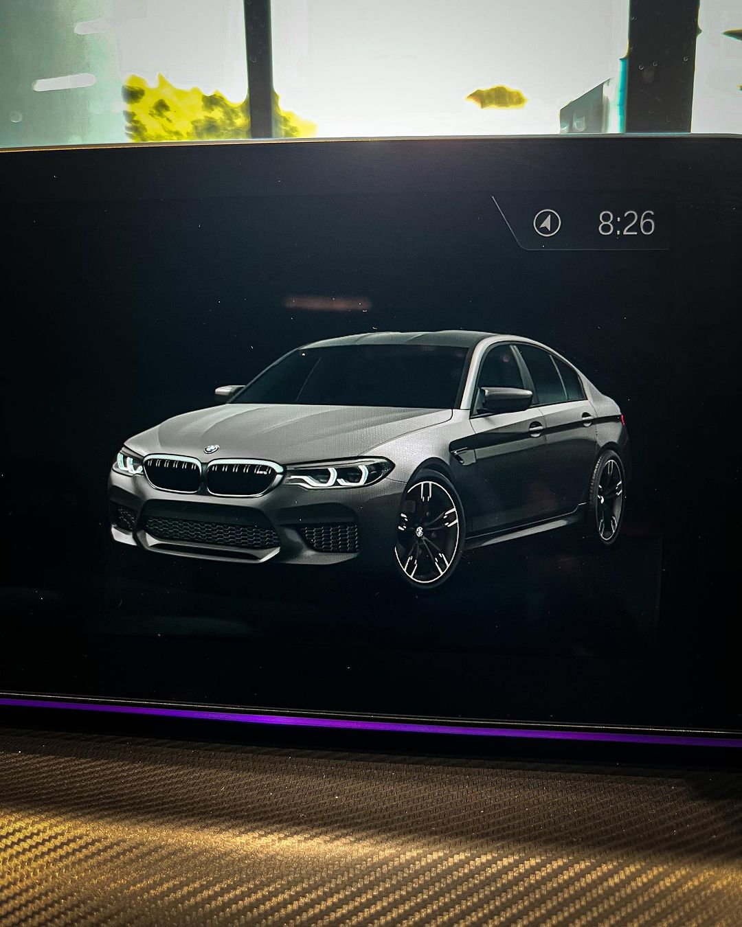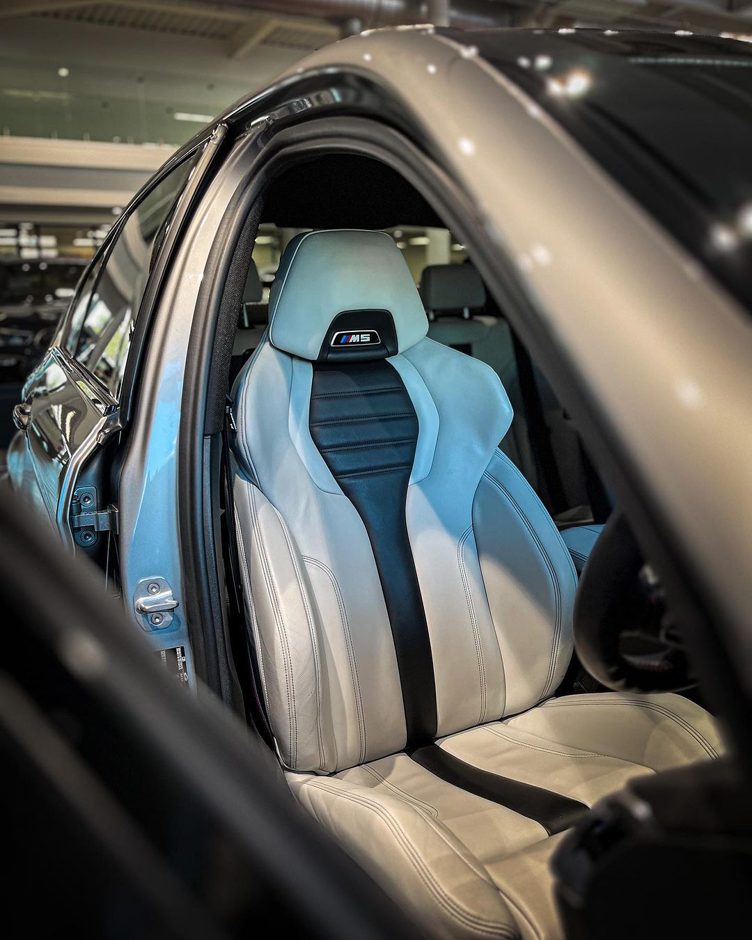 The seats are very comfortable and very adjustable for a sportier drive, and they can be optioned out with messaging seats. The steering wheel has two red buttons to configure the drivers’ ideal individual settings for the drivetrain, suspension, gearbox, exhaust, and brakes. This very car has rear entertainment option ticked for rear passengers. It is a rare option equipped on M5s.