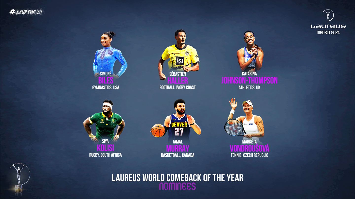 Kolisi is nominated alongside Gymnastics champion Simone Biles, footballer Sebastian Haller, who recently won the 2023 AFCON Cup with Ivory Coast, Athletics champ Katarina Johnson-Thompson, Tennis star Markéta Vondroyšová and basketball player Jamal Murray.