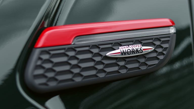 The Mini John Cooper Works 3-Door has bigger twin exhaust tips, and John Cooper Works Badges both inside and outside of the car. It also has a John Cooper Works front and roof spoilers to help keep the car grounded on the road at high speed .
